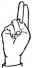На ћирилици написано КАЋА ЂУЛИЋ састоји се из 9 слова [?]. Исписано ћириличном једноручном азбуком за глувонеме: